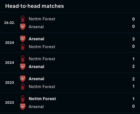 Arsenal vs Nottingham Forest
